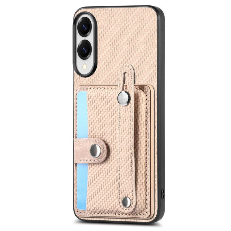 Coque Samsung Galaxy S25 Edge Fibre Carbone avec Porte-Cartes et Sangle-Support